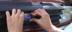 Das Emblem ist selbstklebend, und sollte nach Möglichkeit waagrecht aufgedrückt werden. | ![]() |