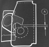 Wenn die Türe richtig sitzt, ist zwischen Klammer und Dorn ca. 2mm Abstand. |