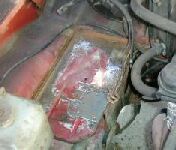 Ein Rostloch im Batterie-Blech sollte geflickt werden, neben den üblichen kleineren Rostflecken innen und aussen. |